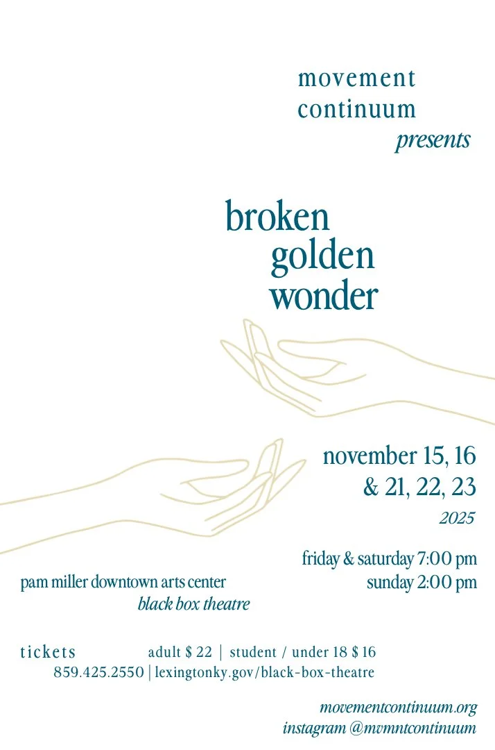 Movement Continuum presents broken golden wonder, a new, original work to celebrate its 15th season as Kentucky's longest running & Lexington's original contemporary dance company.